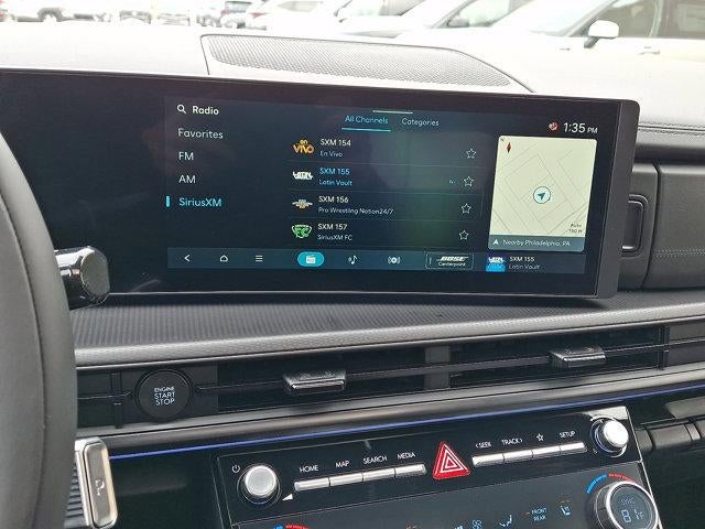 - Radio: AM/FM/HD Bose Premium Audio System -inc: 12 speakers including subwoofer, external amplifier, 12.3" wide touchscreen, wireless Apple CarPlay and Android Auto, Bluetooth® hands-free w/wireless audio streaming, dynamic voice recognition, USB connectivity, SiriusXM, wifi hotspot, Blue Link connected car system, navigation system including traffic flow w/incident data via HD Radio (HERE), OTA updates and rear seat quiet mode