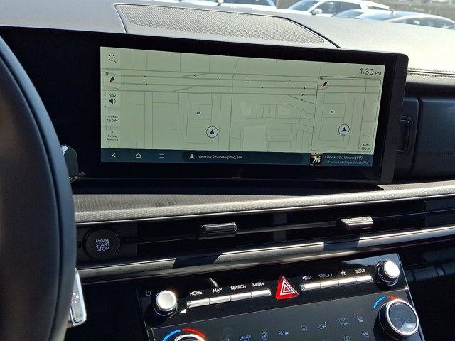 - Radio: AM/FM/HD Bose Premium Audio System -inc: 12 speakers including subwoofer, external amplifier, 12.3" wide touchscreen, wireless Apple CarPlay and Android Auto, Bluetooth® hands-free w/wireless audio streaming, dynamic voice recognition, USB connectivity, SiriusXM, wifi hotspot, Blue Link connected car system, navigation system including traffic flow w/incident data via HD Radio (HERE), OTA updates and rear seat quiet mode