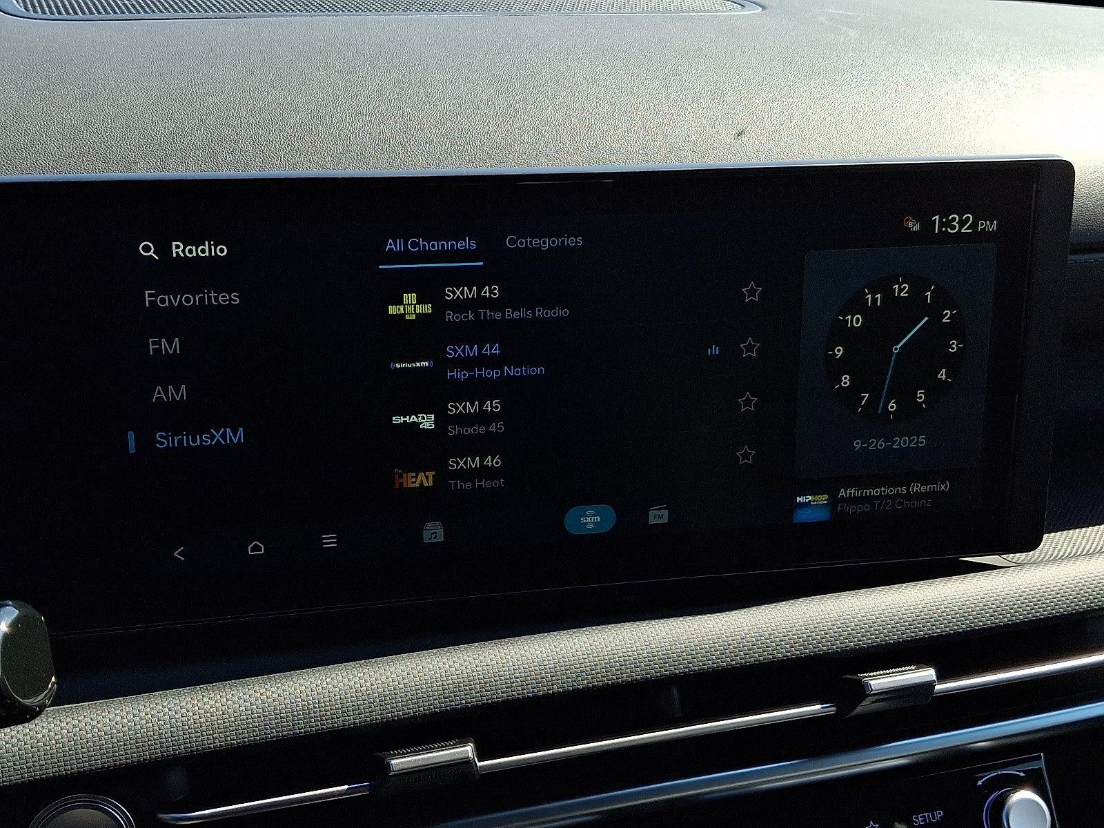 - Radio: AM/FM/HD Audio System -inc: 12.3" color touchscreen display, 6 speakers, SiriusXM satellite radio system (3-month trial subscription), wireless Apple CarPlay and Android Auto integration, controller OTA update capability, Blue Link connected car system and USB connectivity