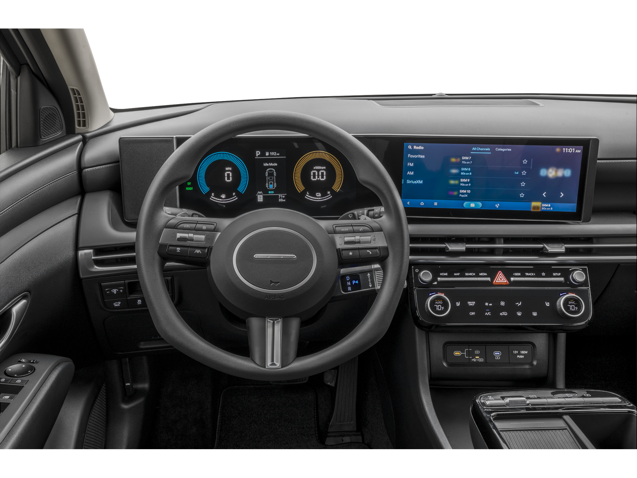 - Radio: AM/FM/HD Audio System -inc: 12.3" color touchscreen display, 6 speakers, SiriusXM satellite radio system (3-month trial subscription), wireless Apple CarPlay and Android Auto integration, controller OTA update capability, Blue Link connected car system and USB connectivity