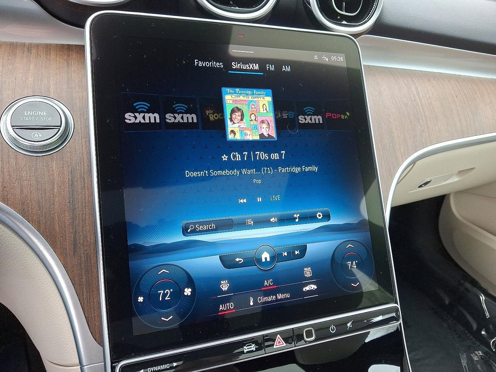 This C 300 4MATIC is a well-optioned, luxury-focused sedan finished in Polar White over Macchiato Beige MB-Tex. Its configuration emphasizes comfort and refinement, featuring heated and ventilated front seats, power front seats with memory, panoramic sunroof, heated steering wheel, natural grain walnut wood trim, and Premium Line equipment. The 4MATIC all-wheel-drive system delivers confident performance year-round, paired with the smooth and responsive 9-speed automatic transmission.
