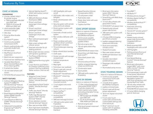 The Honda Civic Touring is packed with a wealth of advanced features that elevate your driving experience. The Honda Satellite-Linked Navigation System ensures you'll never get lost, while the Adaptive Cruise Control with Low-Speed Follow helps maintain a safe distance from the vehicle ahead, even in stop-and-go traffic.